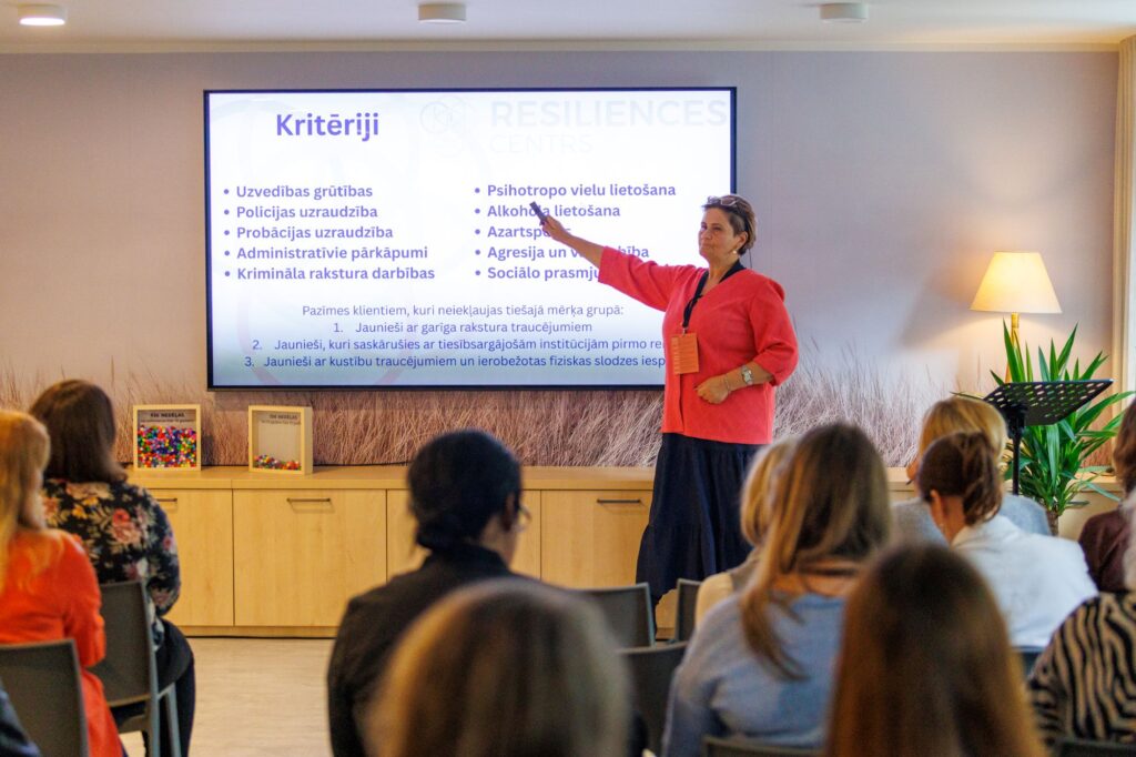 Savukārt Svetlana Lēvalde, biedrības “Resiliences centrs” pārstāve, runāja par nevalstisko organizāciju lomu bērnu atbalsta sistēmā un praktiskiem risinājumiem sadarbības stiprināšanai starp valsts un sabiedrisko sektoru, kā arī klātesošos iepazīstināja ar sociālās rehabiltiācijas pakalpojumiem “Dari” un “Misija”.