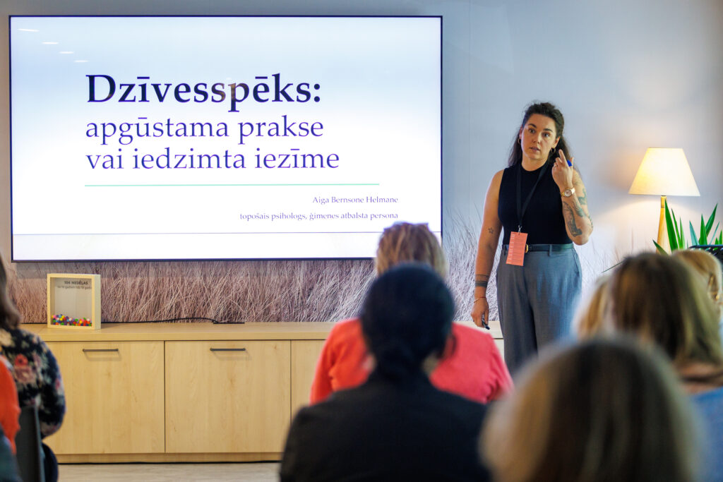 Aiga Bernsone-Helmane, LBAF ģimenes atbalsta persona un topošā psiholoģe, iepazīstināja ar pieaugušo personu dzīvesspēka nozīmīgumu gan personīgajā dzīvē, bet jo vairāk profesionālajā ikdienā, īpaši esot blakus un strādājot ar bērniem, kuriem nepieciešams atbalsts.