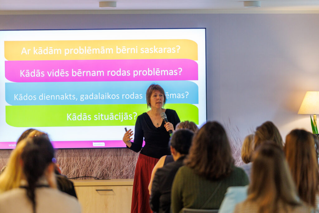 Elīna Lejiņa-Kairiša, LBAF pakalpojumu vadītāja, iepazīstināja ar sociālās rehabilitācijas pakalpojumiem “Ceļš pie sevis” un “Labirints”, kas sniedz praktisku atbalstu ģimenēm ar bērniem, kuriem ir uzvedības grūtības, vecumā no 4 līdz 12 gadiem ieskaitot.
